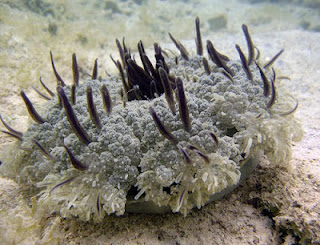 "It's hot down in the Caribbean mehson, we ain' wastin' energy doin' all that movin' aroung!" Instead of swimming upright, bell-up, tentacles-down in traditional jelly fashion, these guys find a comfy spot on the sandy or muddy bottom of calm lagoons or bays and kick back, upside down.